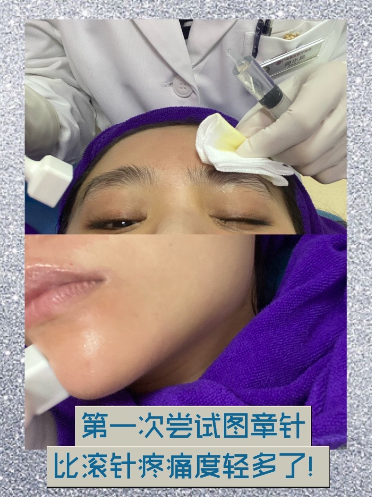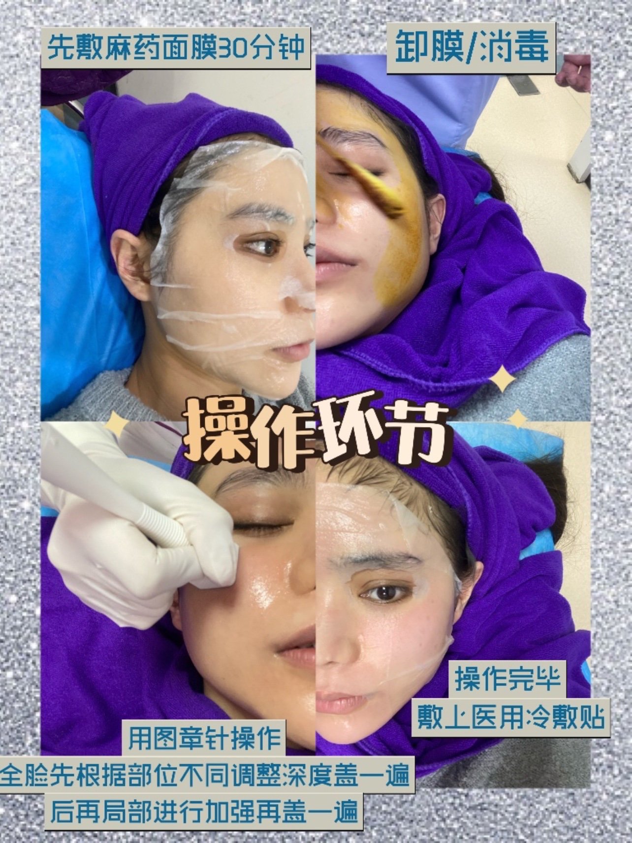 2️⃣敷了麻药面膜大概30分钟,护士小姐姐就带着我去了操作的无菌房间进行术前消毒。先是卸掉面膜,再用棉签蘸着碘伏全脸涂抹了一遍,最后用生理盐水再次清洗;