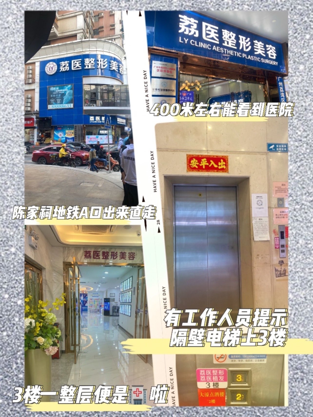 我是🚇地铁过去的,1号线陈家祠A出口出了后直走400-500米便能看到医院的大招牌了,类似克莱因蓝的招牌还是非常醒目的,不容易走错or路过。