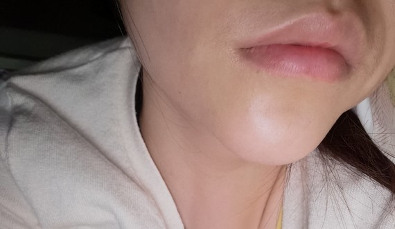 可惜这个快乐只维持了不得1星期,几天后下巴就开始鼓包变形了。静态图片显现不出来的是,我下巴上这些包非常非常的硬,用手使劲按都按不动的类型。