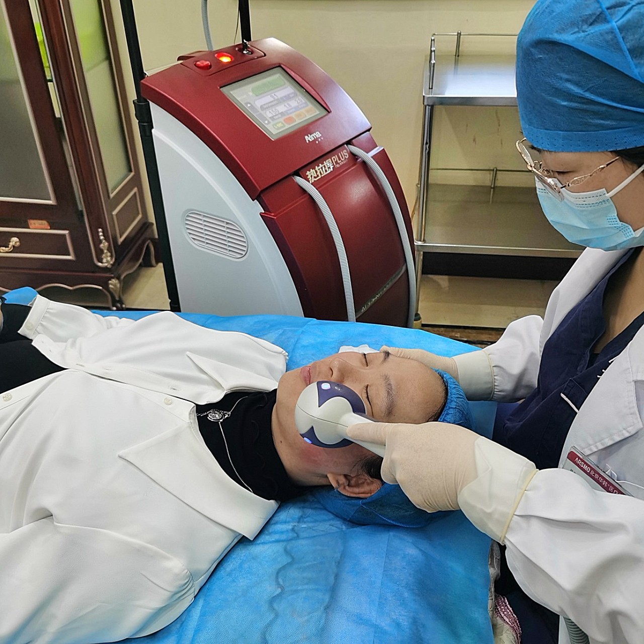 附上后面让护士小姐姐帮忙拍的照片,确实不疼!医生会根据反应从相对低的能量慢慢往上加,热感会慢慢增加,但的确不痛!感谢美丽的医生姐姐!