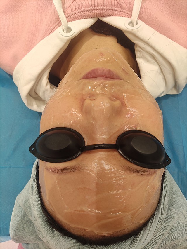 敷上凝胶,第一遍模式强度不太大,皮肤有轻微的温热感,刺痛感不明显,然后进行第二次稍微加强了,轻微的刺痛感也是可以忍受的,第三次能量更强,我是比较耐受的,没有感觉很疼,然后医生很细心,看我的口周有痘印,都帮我加强了一遍,有痘印的地方,真是太贴心了!