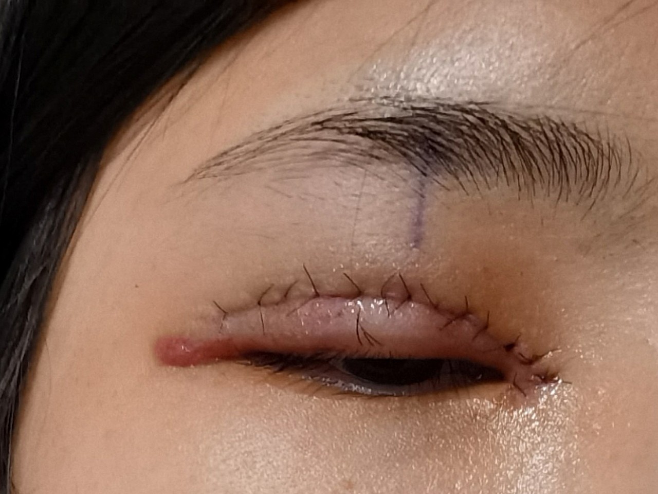 刚做完第一天,双眼皮真的很肿,感觉眼皮压力蛮重的,眼睛都有点睁不开的意思,第一次