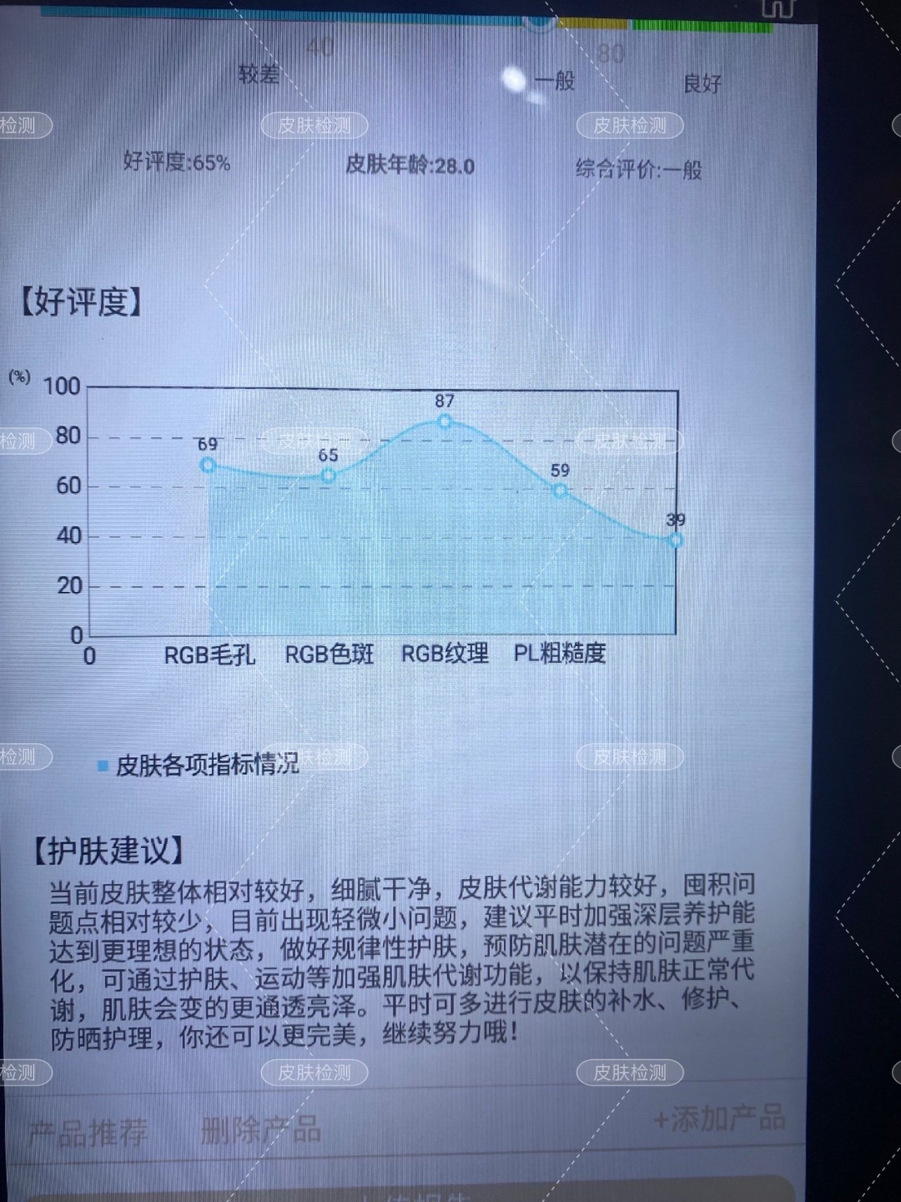 项目体验过程:体验感真的很好,来了以后先帮我洗了脸,做了下皮肤检测,一下子就看明白了皮肤需要改善的问题!除了工作人员保姆式贴心陪做项目外,院长的技术也是超级好,根据我的皮肤设定了3个模式,全程无痛感,而且使用的耦合剂也是自带保湿效果,全程都感觉舒适😊