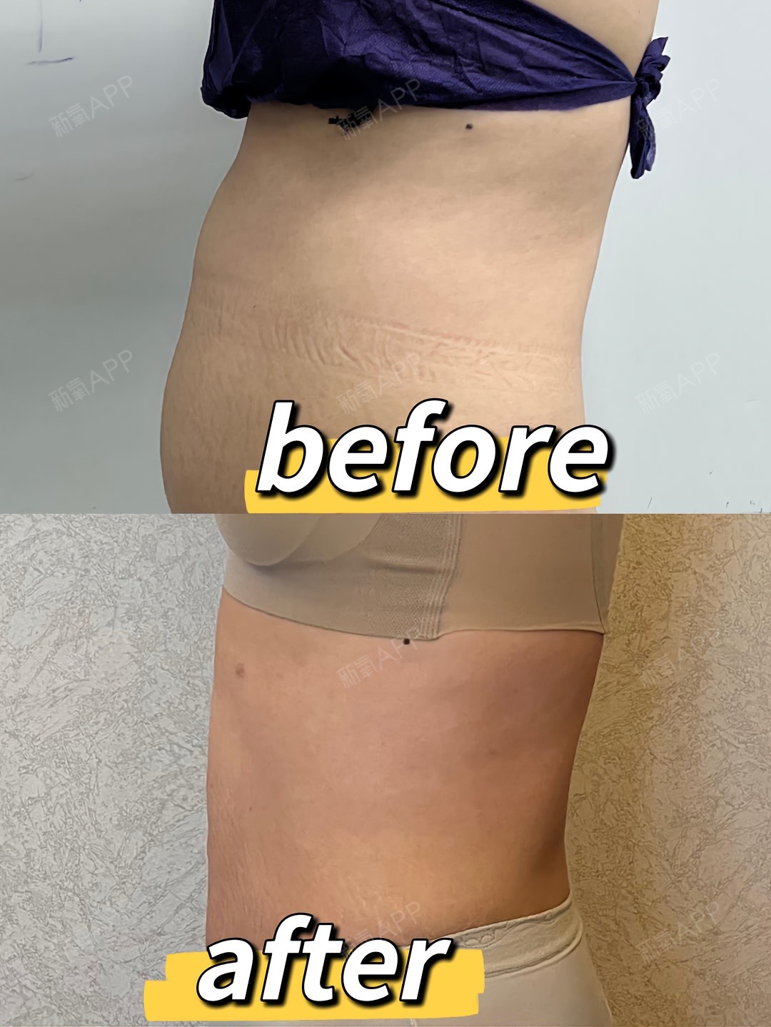 看的出来不管是侧面还是正面还是背后,变化都是很明显的。而且我担心吸脂太多也不好,所以和医生沟通的结果就是不需要马甲线,也不需要吸脂特别多,还是适当保留了合适的脂肪的。安全健康肯定我还是放在第一位的。不过现在这个效果我确实还是很满意的。