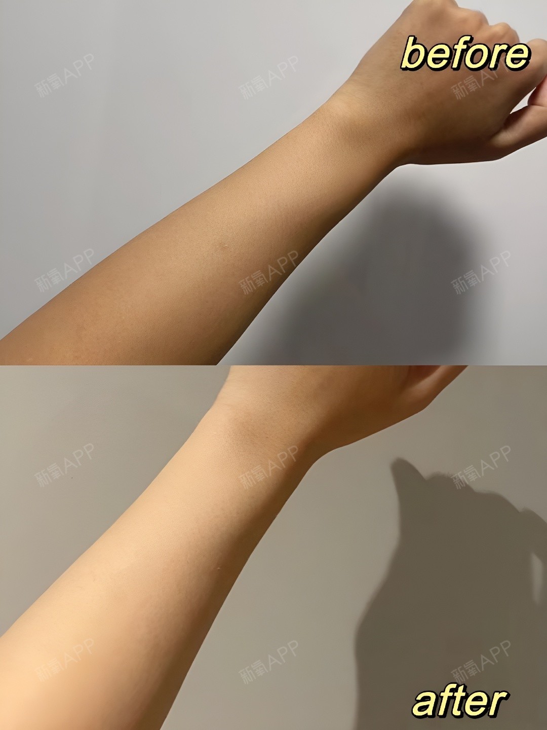 脱毛当天就感觉胳膊很干净,比之前变白了很多,脱毛一周后会长出来一点点小的汗毛,但是毛发比之前要细而且很浅,脱毛一个月就需要再次体验了