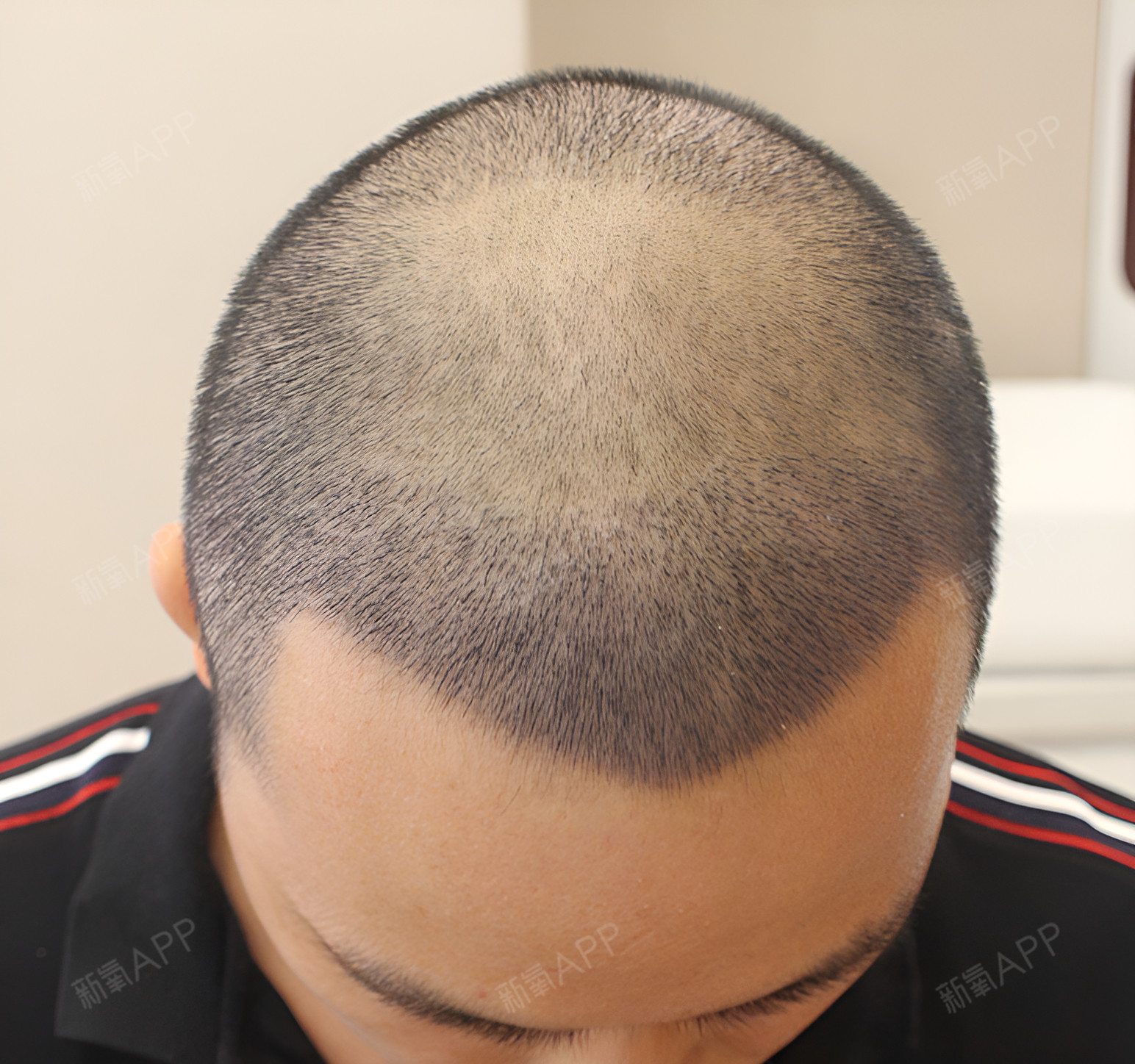 没想到这毛囊一种植上去,头顶就看不出任何脱发的痕迹了,微针植发、加密效果很自然,术前设计的植发密度也不错,术后效果非常自然,只是头发生长的很慢,现在才术后一周多。