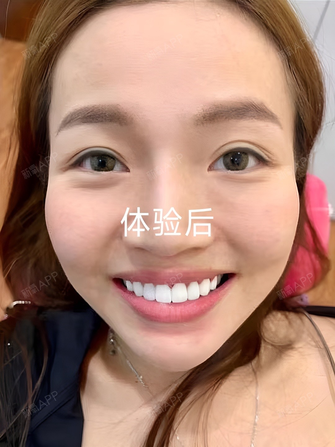 瓷贴面选自然亮白色号,牙色均匀透亮不假白,门牙微调弧度更饱满,牙缝完全闭合。提供免费抛光护理,赠送牙线教程。